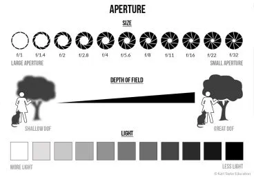 The aperture is the opening in the lens that controls how much light enters the camera. It’s measured in f-stops (e.g., f/1.4, f/2.8, f/16). Lower numbers mean a wider aperture, which allows more light and creates a shallower depth of field.
